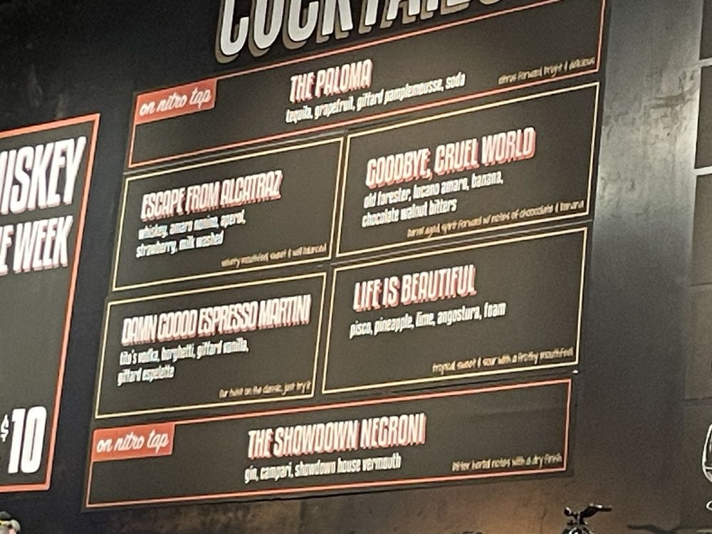 “ A block off the main strip but I really liked it here with a fun bar menu. The gentleman helping me was very nice... -- I initially wanted the espresso martini on the menu with tequila. However, it seemed that it was already premade. A lot of places that I've been to just leave it at that but the bartender took it upon himself to make it with a little twist. So that was pretty cool. It started to get crowded after a while but he was attentive and kept checking up. The drinks were really delicious. Usually, I try a special cocktail and then resort to tequila sodas after. But I had a few of these bad boys, perfectly crafted. I didn't try any of the food but they had a selection of salads, corn dogs, etc. I'm not in the city too often but I'd definitely come back here again if in the area. ”