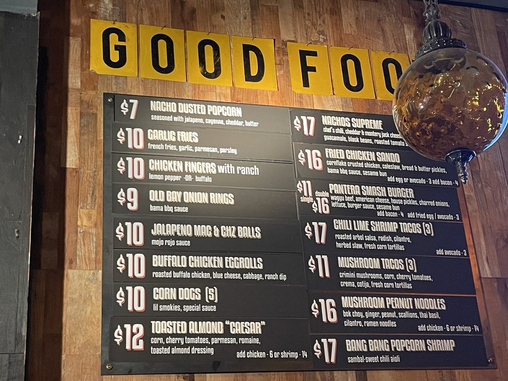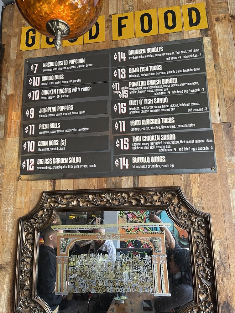 “ Fun bar for cocktails and pool. It was pretty busy when we arrived which was a good vibe. They also have food that we tried. Highly recommended the popper and fried chicken sandwich. Also outdoor seating which is nice for the nice warm day which happened to be the case. Service was kind of slow as there was only two bar staff working, taking orders and making drinks. If ordering food, a pager is given to you. When food is ready, you have to come back ti the bar to pick up. ”